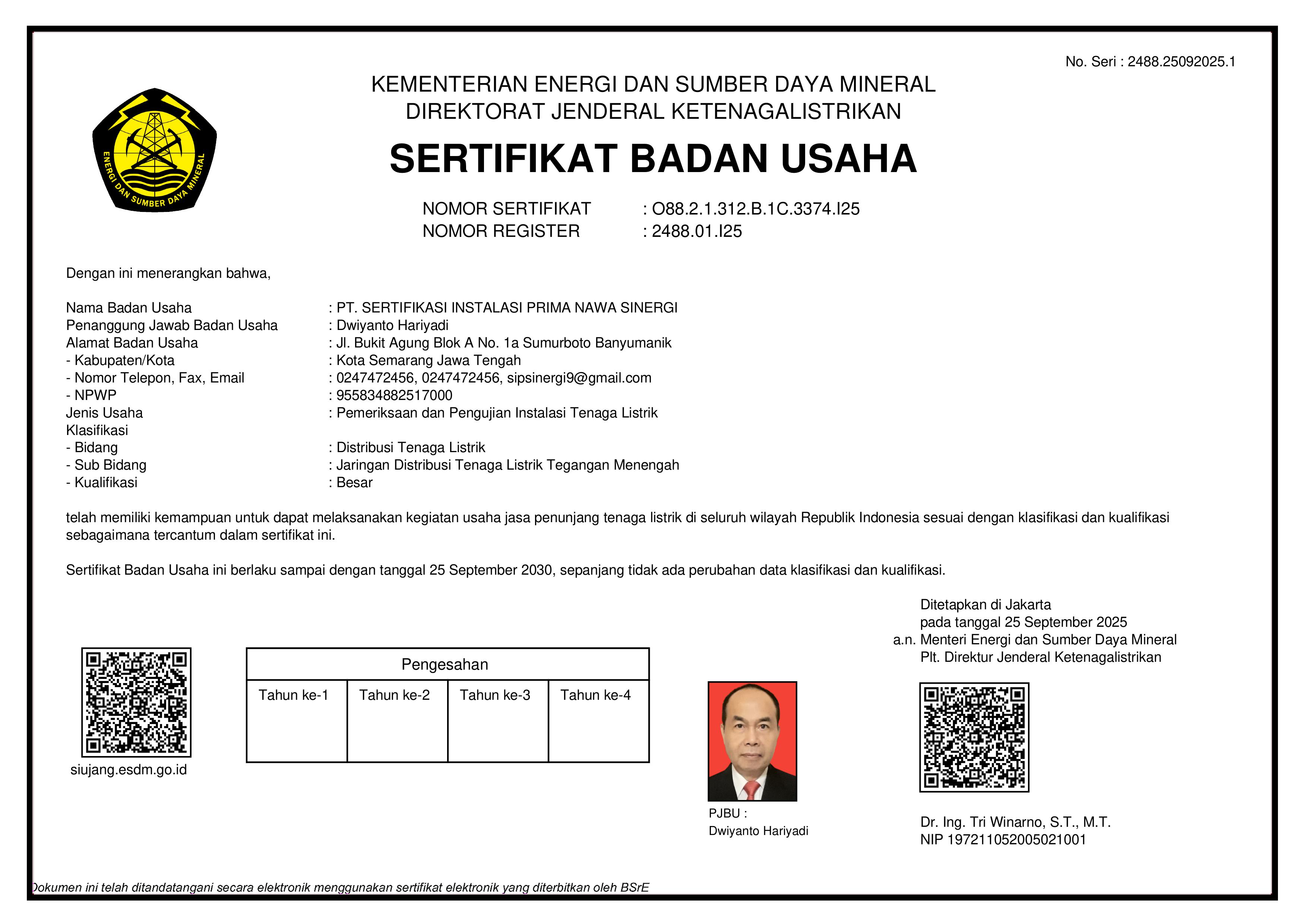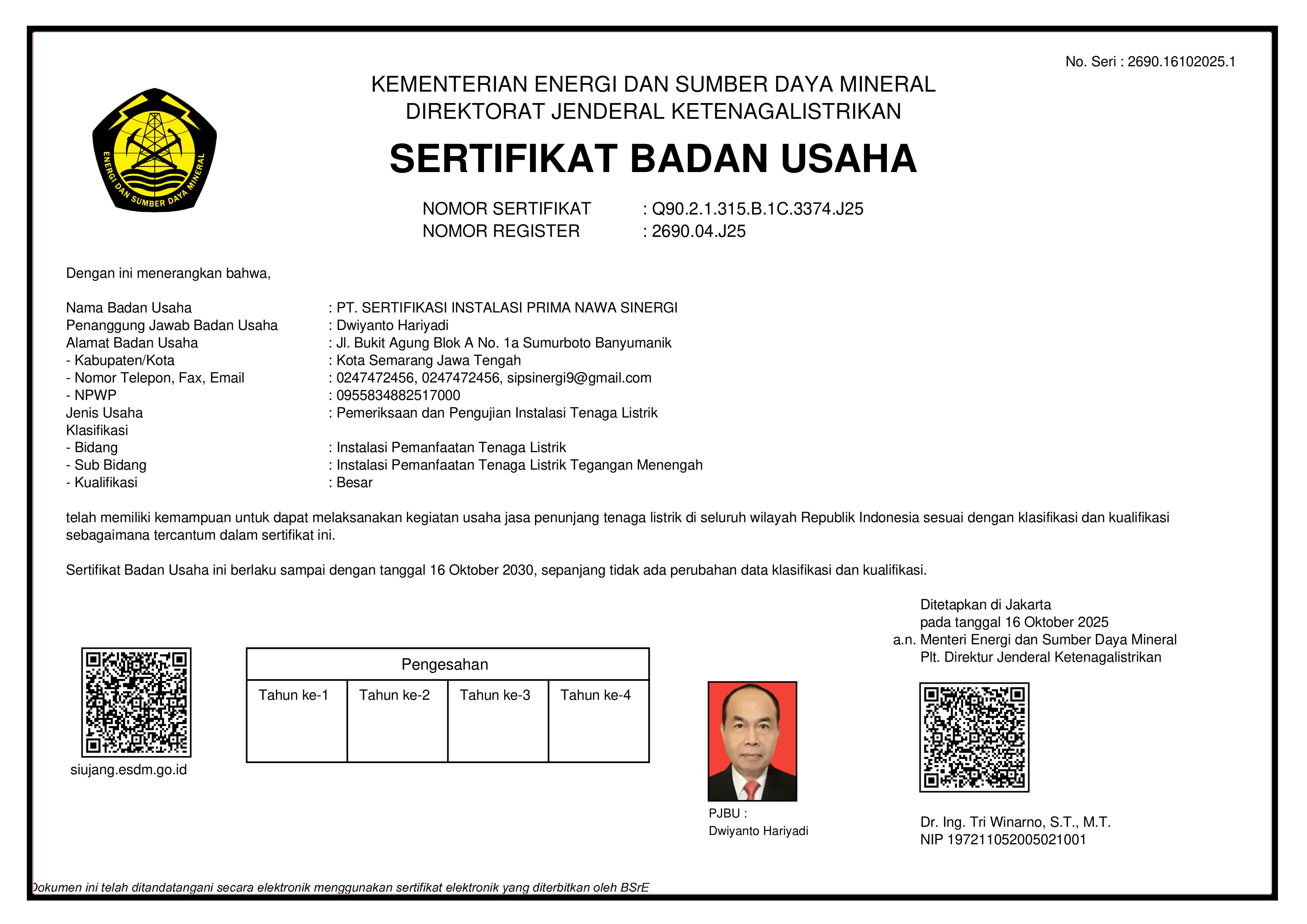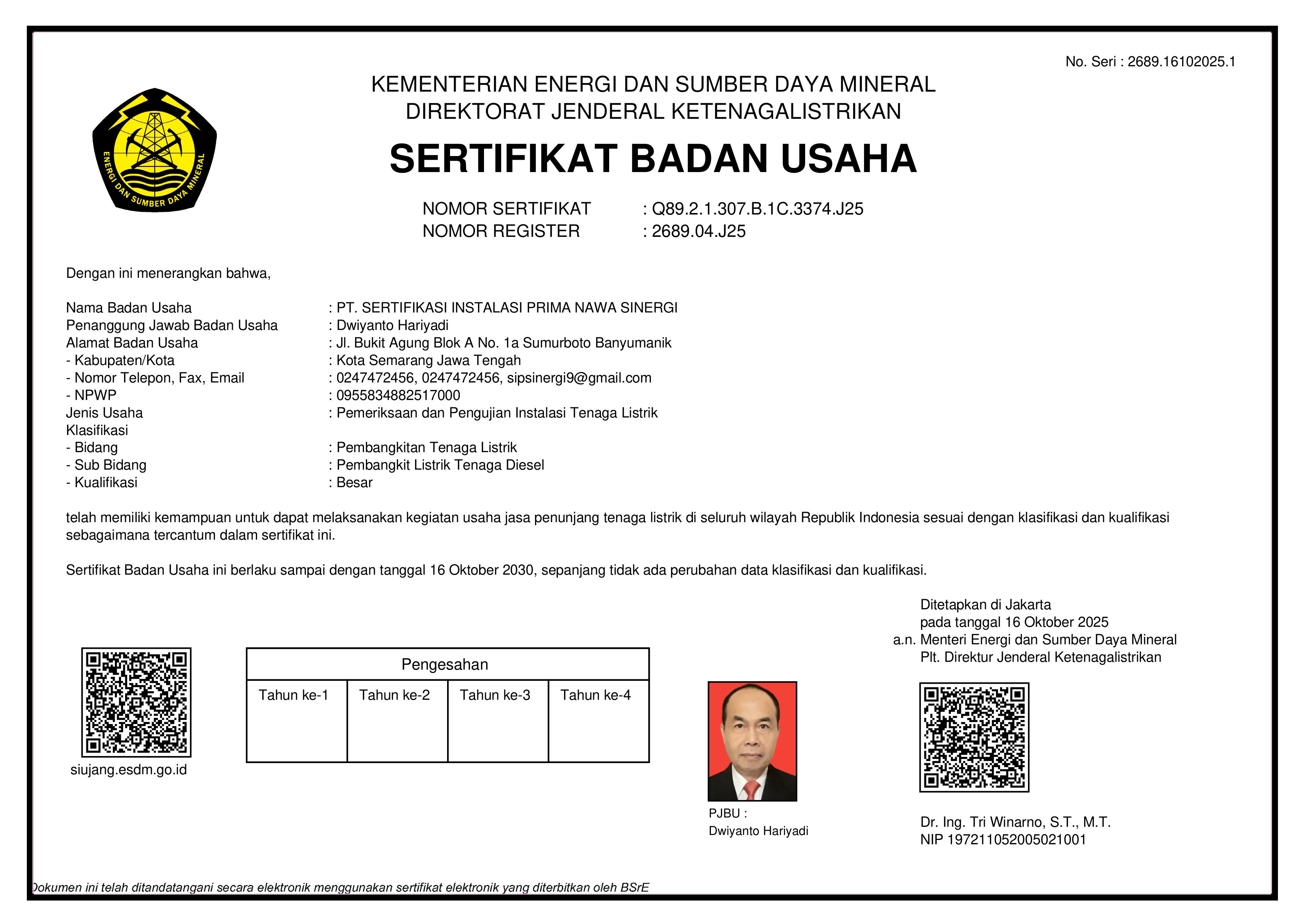 Sertifikat Badan Usaha PLTD | Direktorat Jenderal Ketenagalistrikan | 16-10-2030 | Preview |